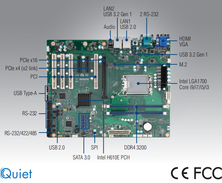CRT/DVI/LVDS, 10 COM, 10 USB 2.0, Dual LAN